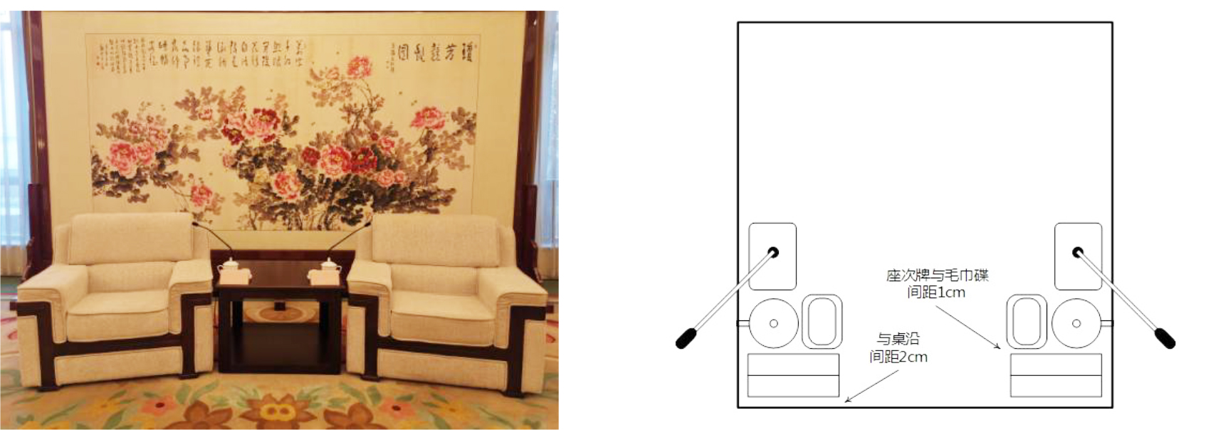▲圖B.2 座牌、話筒、毛巾碟、茶杯擺放示意圖