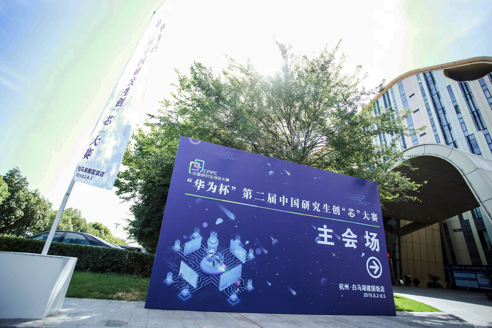 ▲“華為杯”第二屆中國研究生創(chuàng)“芯”大賽議程表展板